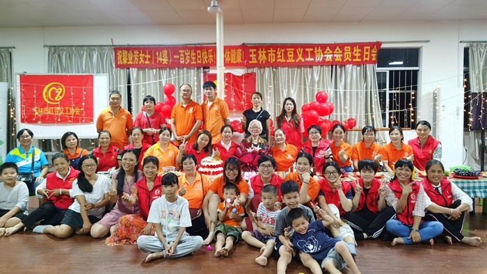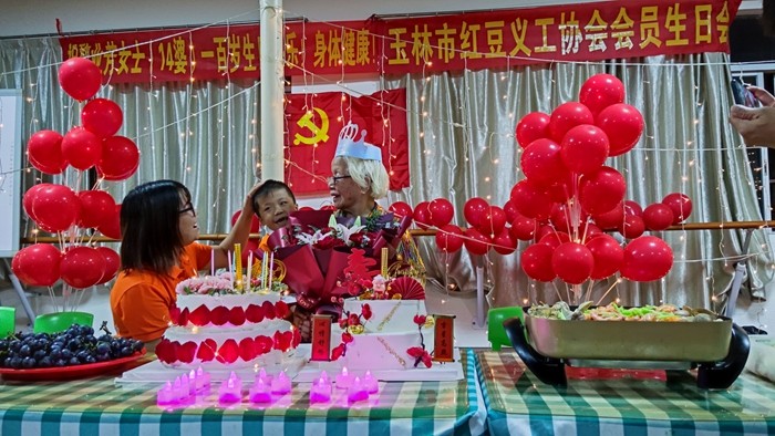 广西玉林孤寡老人今年满百岁,红豆义工办起敬老祝寿交流活动
