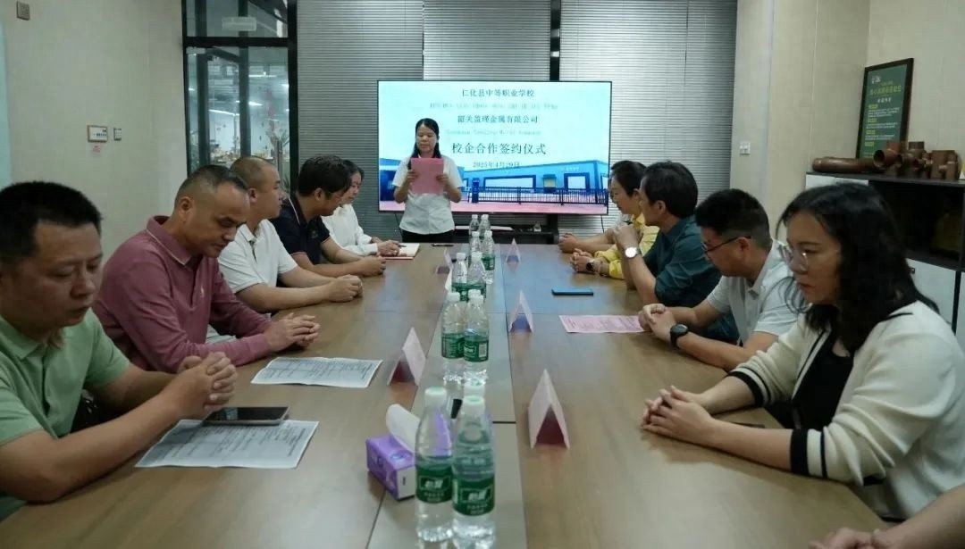 在签约仪式上,企业领导首先对公司的发展历程、产业特色以及未来的发展规划进行了详尽的介绍,使在场的所有人员对企业有了更为深入的了解。紧接着,开发区代表和企业代表先后发表了讲话,表达了对本次校企合作的深切期待与美好展望。随后,韶关盈瑾金属有限公司与仁化县中等职业学校正式签署了合作协议,这一举动标志着双方的合作关系正式生效。