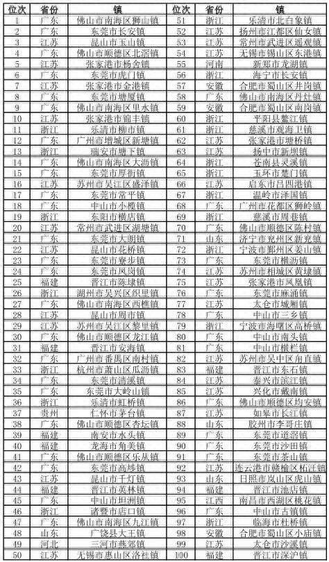 (广东东莞市)15个镇上榜,上榜最多的城市。
