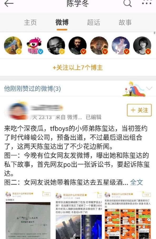 陈学冬也中过招,手滑点赞了TFBoys的黑料,不过在事后很快的取消了,但还是被网友抓到了,这么可爱的行为也只有他做的出来了。