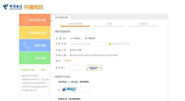 近日,中国电信官网在充值专区开通了给联通号码话费的充值功能。