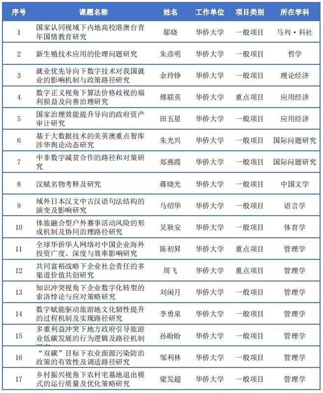 国家社科基金名单出炉!华侨大学排名福建省第4、全国第86……