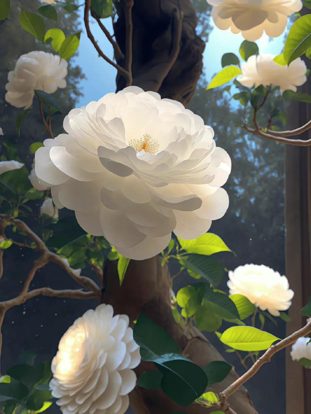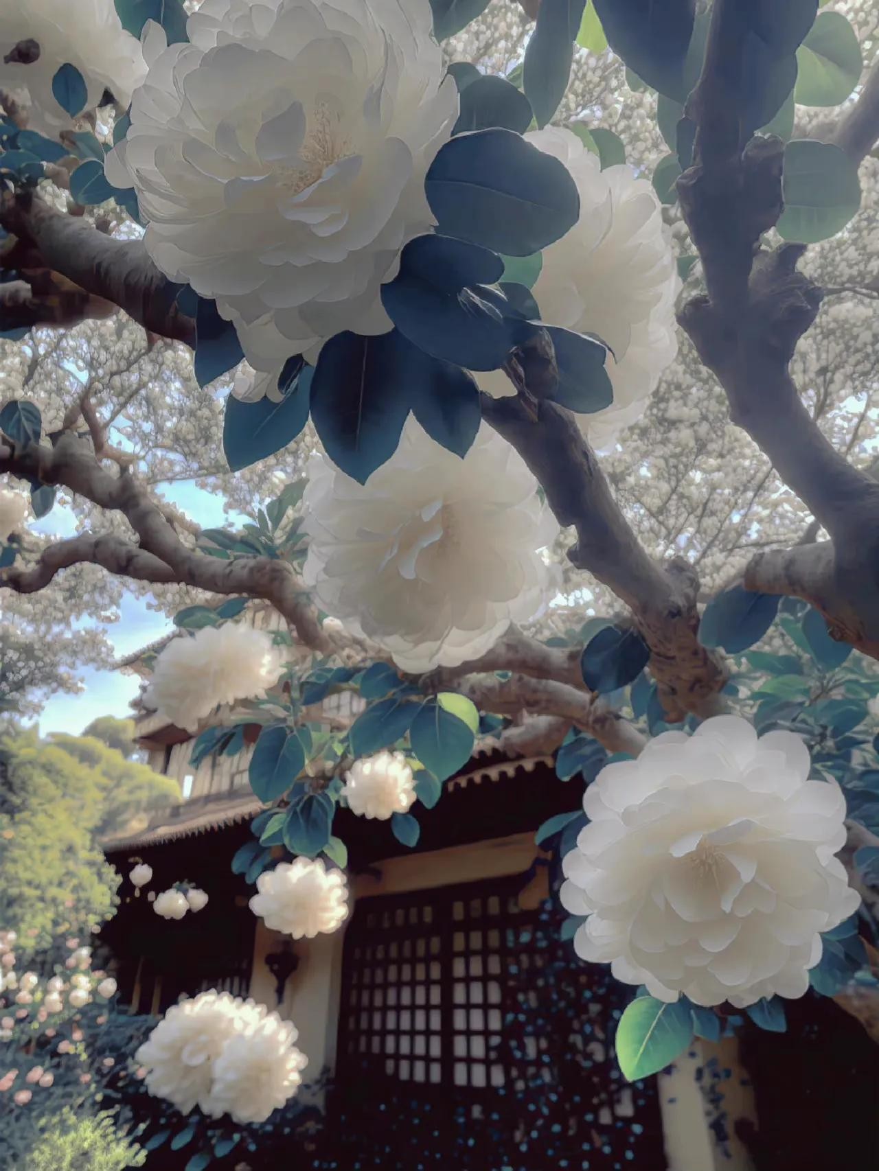 白色山茶花壁纸分享~大家知道山茶花的花语是什么吗?