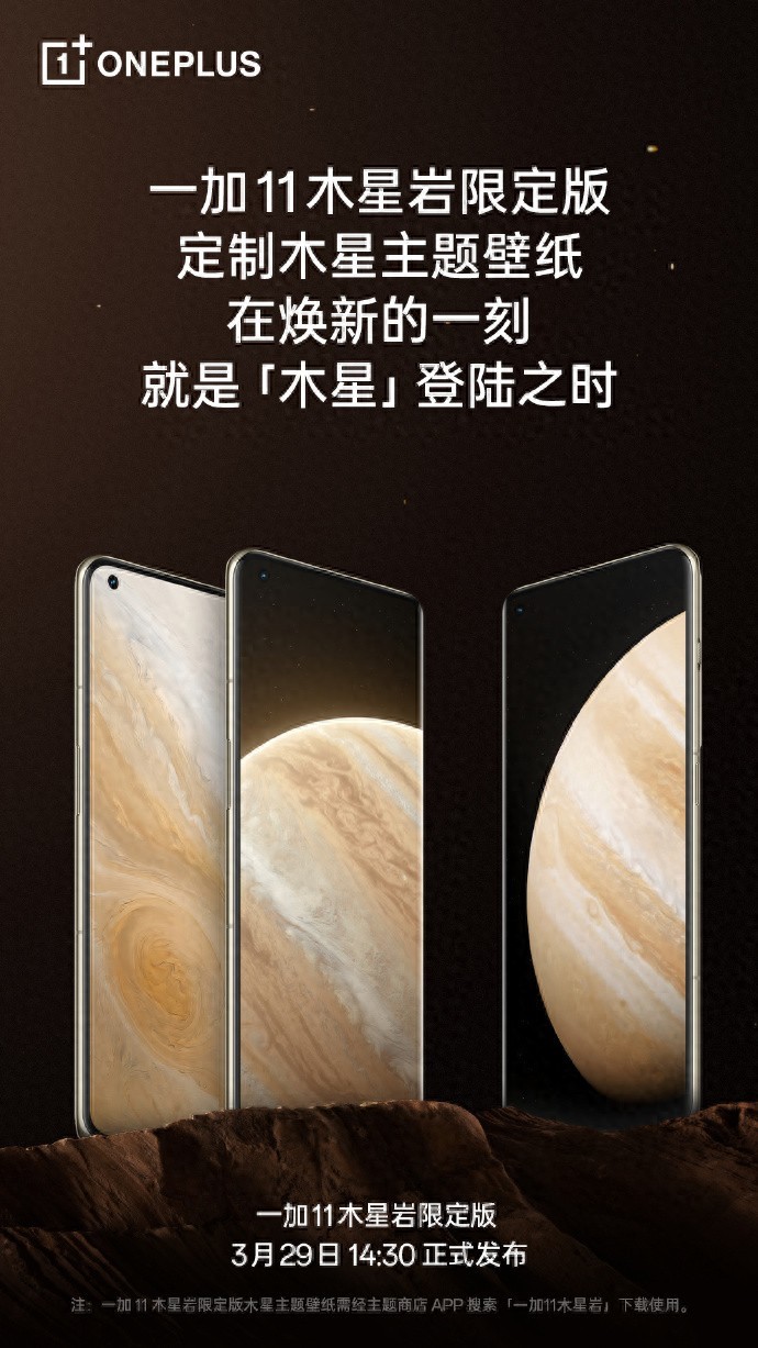 IT之家 3 月 28 日消息,一加手机官方微博发文,一加木星岩主题上架一加主题商店。感兴趣的用户可前往主题商店 App 搜索“一加 11 木星岩”即可下载使用。