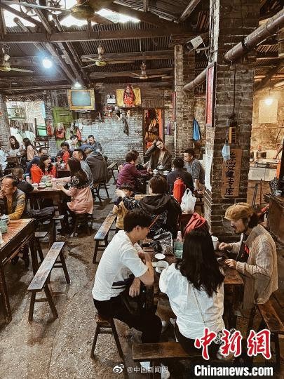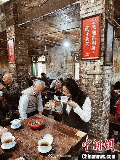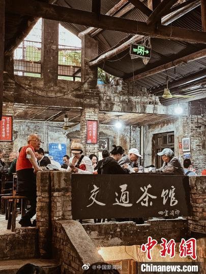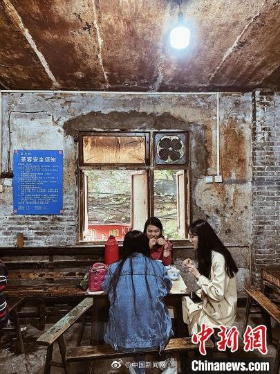 【重庆交通茶馆:喝茶成年轻人新国潮】重庆交通茶馆以砖木建造而成,房顶全木质,灰黑砖瓦和斑驳墙体保留着上世纪七八十年代重庆老茶馆风格。喝茶是重庆人的消暑传统,也是年轻人的新国潮,今天你喝茶了吗?(陈秋杏 李晨)
