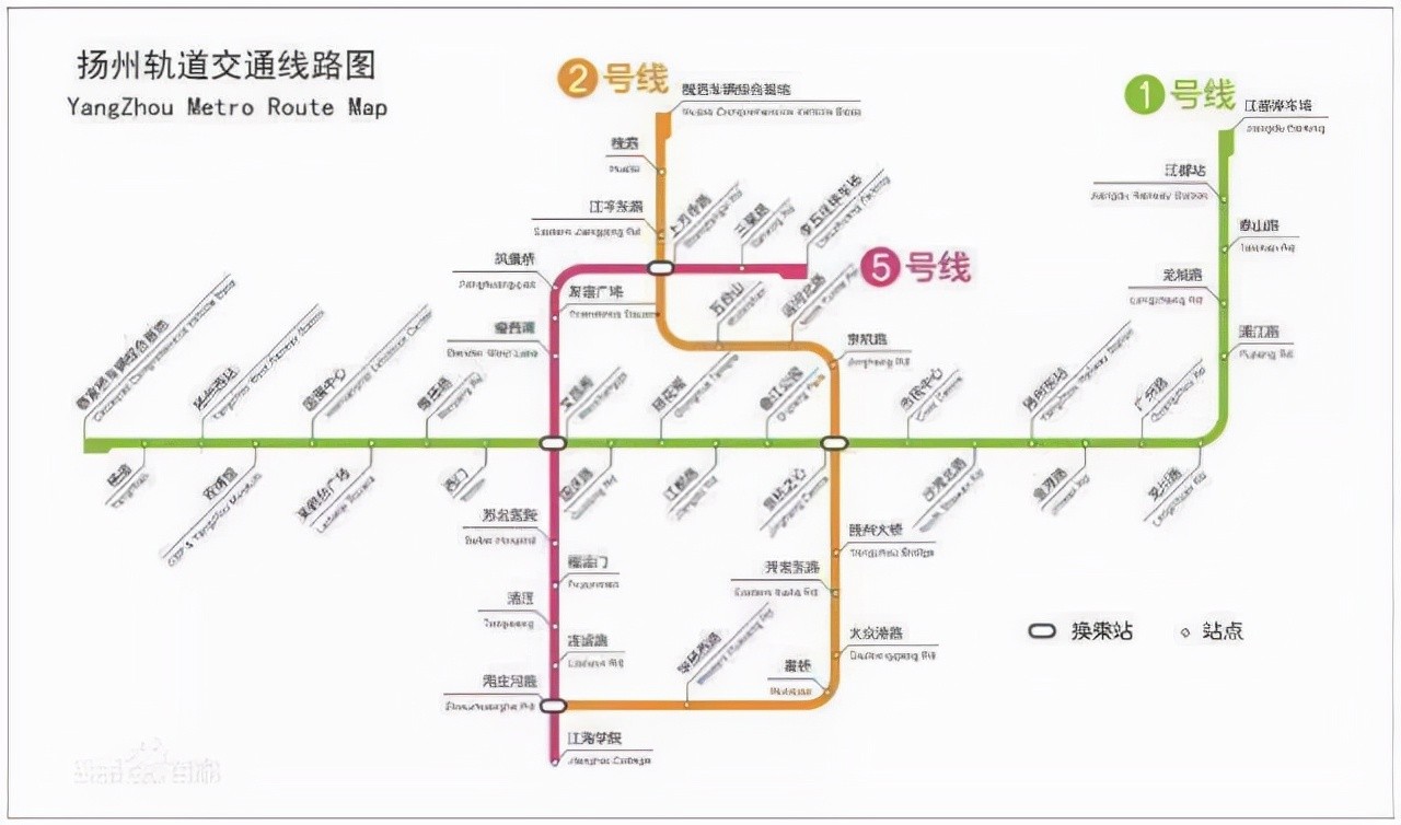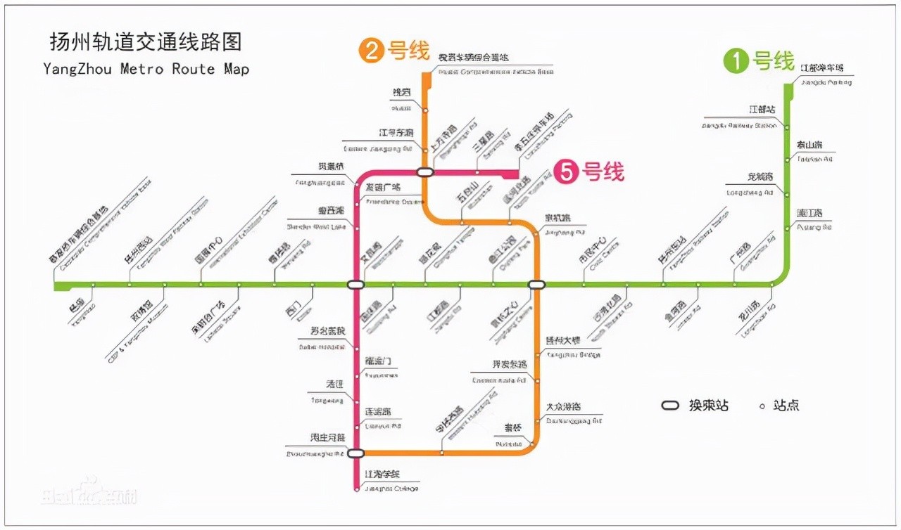 扬州轨道交通:5条中心城轨道,2条都市区快轨线,1条城际铁路线