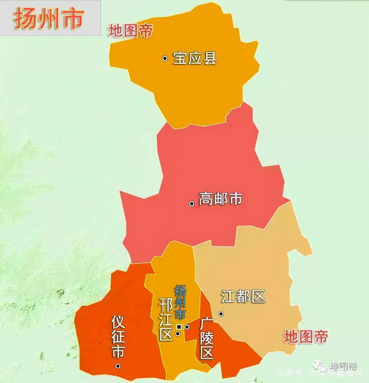 扬州市下辖邗江区、广陵区、江都区3个市辖区和宝应县1个县,代管高邮市、仪征市2个县级市