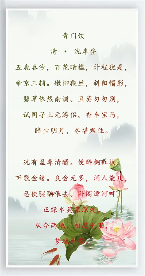 “念柳外青骢别后,水边红袂分时,怆然暗惊”,“念” 字如钥匙,开启回忆之门,柳林外,骏马嘶鸣,他与佳人挥泪作别;水岸边,红袖摇曳,离人渐行渐远,往昔场景历历在目,思及此处,词人不禁 “怆然暗惊”,惊于时光匆匆、欢情难再,更惊于离恨竟如此蚀骨锥心。下阕 “无端天与娉婷”,嗔怪上天无端赐予佳人如此风姿绰约,让自己深陷情网,难以自拔,看似埋怨,实则是对佳人倾国倾城貌、缱绻温柔情的深情回味。“夜月一帘幽梦,春风十里柔情”,明月高悬,清辉洒于帘幕,二人共赴幽梦,沉醉爱河;春风和煦,十里扬州路上,柔情蜜意四溢,此句化用杜牧 “春风十里扬州路,卷上珠帘总不如”,却青出于蓝,将昔日欢娱之景、缠绵之情写得如梦如幻,诗意盎然,成为流传千古的爱情绝唱。