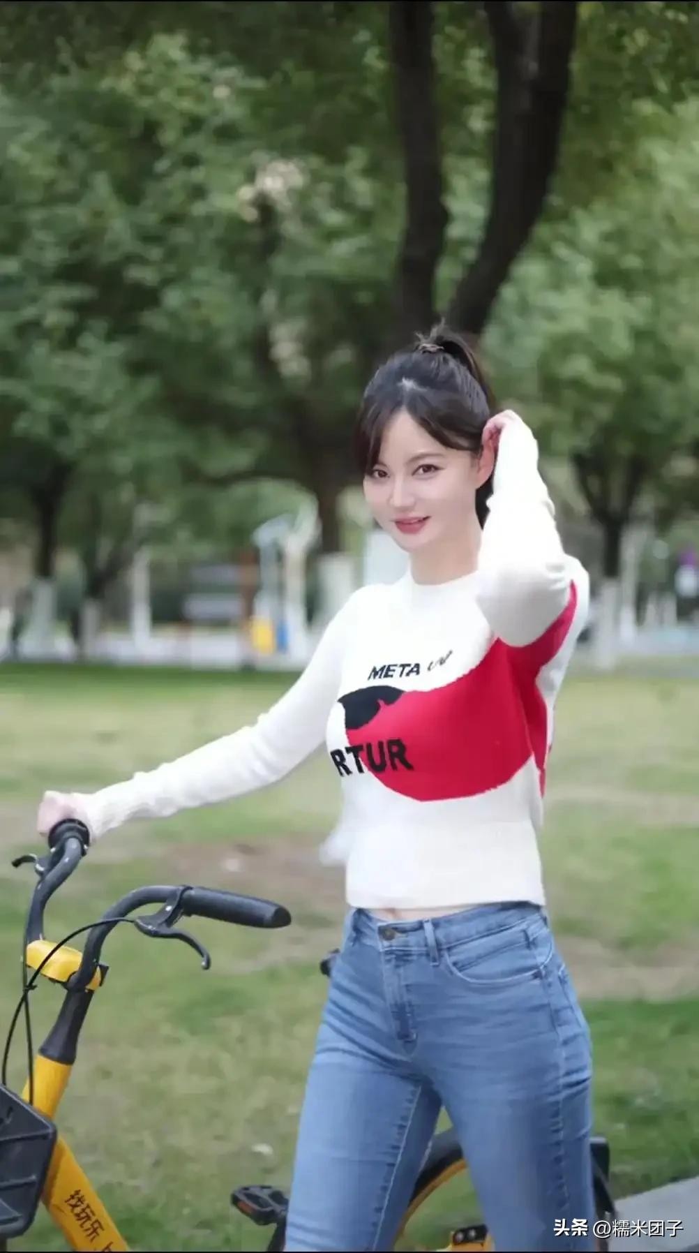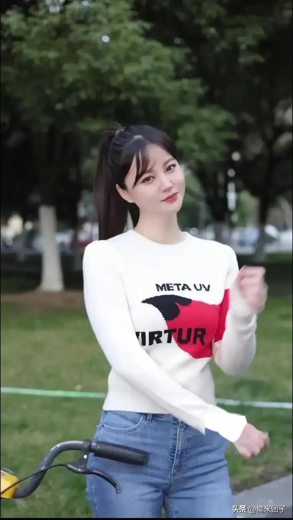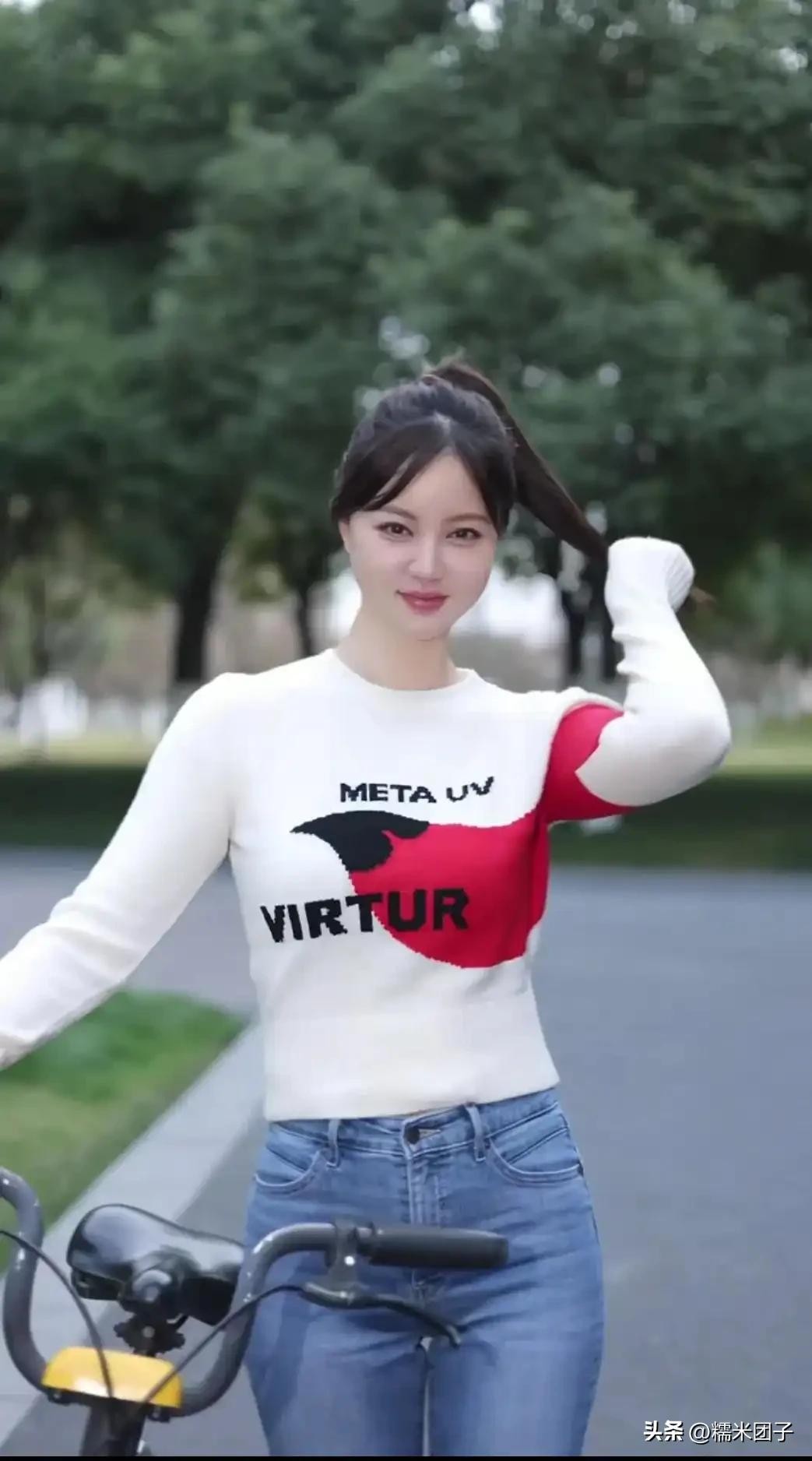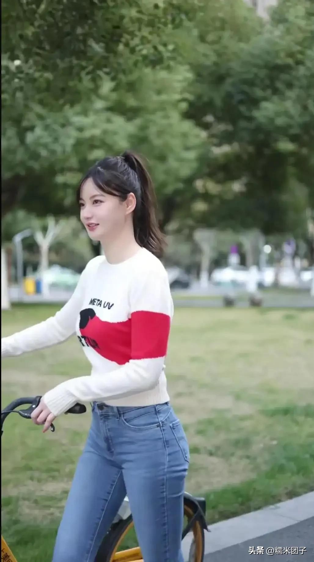 如今40岁的吴一迪,依然体态轻盈,面容清甜,骑行在街头,尽显少女感。