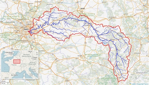 塞纳河全长777公里,流域面积为78910平方公里,法国境内面积78650平方公里,还有260平方公里在比利时境内。塞纳河的支流中流域面积大于1万平方公里的有三条,分别是:瓦兹河,马恩河,约纳河。流域中2%是森林,78% 是耕地。除巴黎外,塞纳河流域内还有另外三个人口超过10万的城市:河口的勒阿弗尔、塞纳河谷的鲁昂和北部边界的兰斯,人口密度为每平方公里201人。
