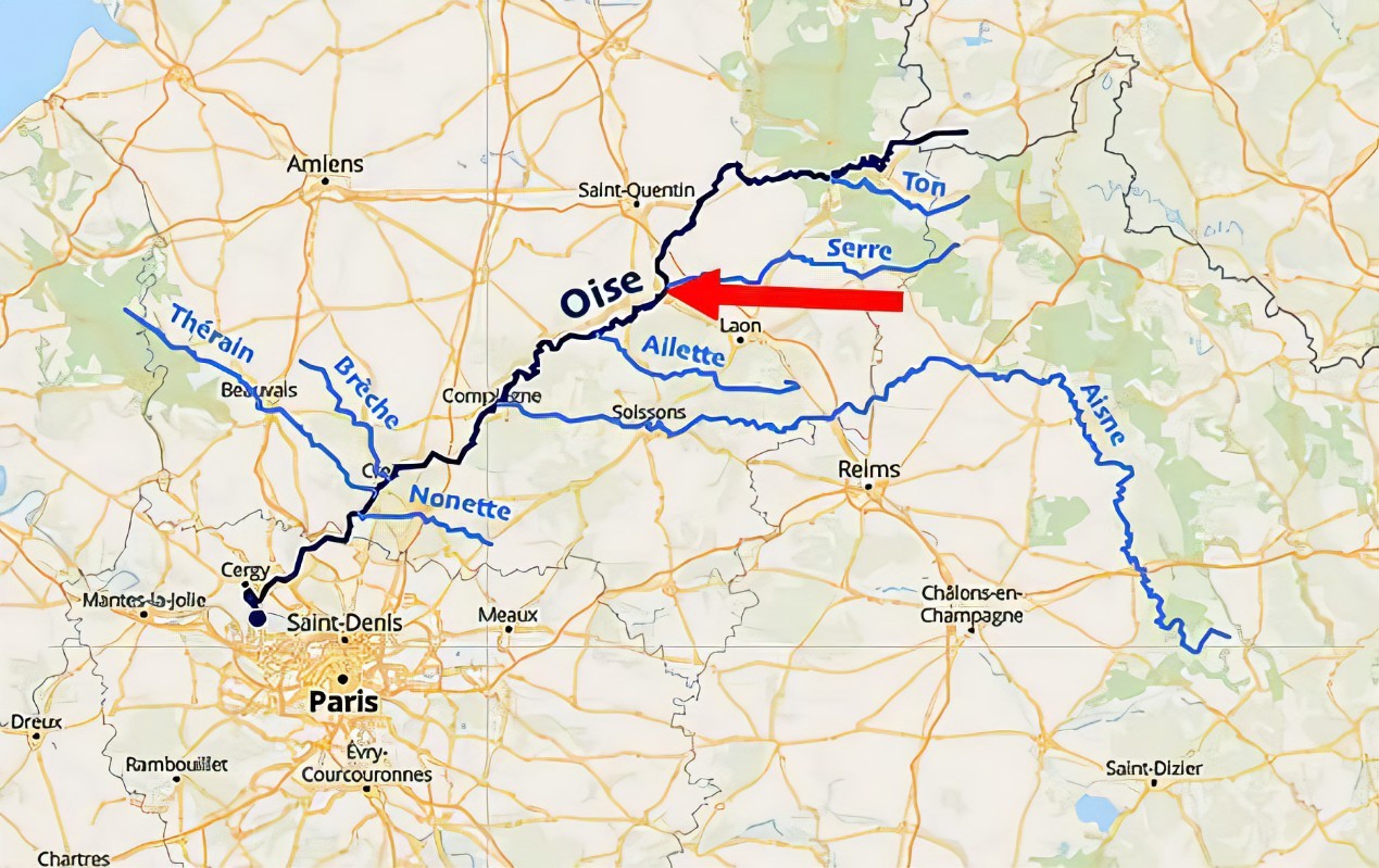 4、下塞纳河-从巴黎到鲁昂,主要支流有瓦兹河(右)、奥贝特河(右)、埃普特河(右)、安代尔河(右)、厄尔河(左)等,其中瓦兹河是塞纳河流域面积最大的支流,河长341公里,流域面积17000平方公里,流量110立方米/秒,其最大支流埃纳河河长356公里,流域面积7752平方公里,流量63立方米/秒。