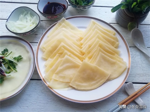 春饼是传统美食,北方有立春吃春饼的习俗,有喜迎春季、祈盼丰收之意,象征着春天的到来和新的开始。春饼是用面粉烙制或者蒸制而成的薄饼,可以包裹各种菜肴一起食用,最常见的是包裹豆芽、土豆、猪肉、鸡肉等食材。