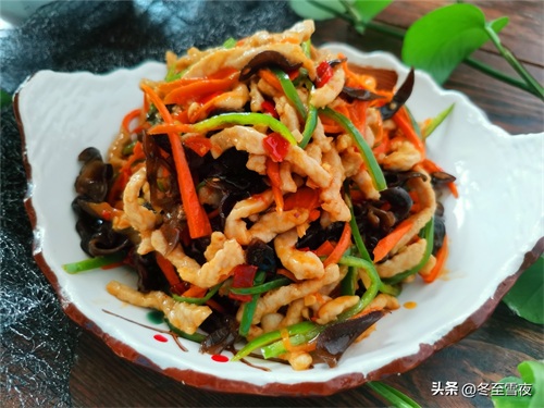 【鱼香肉丝】所需材料:猪里脊肉半斤、水发木耳1小碗、胡萝卜半根、尖椒2个、油盐适量、泡椒1汤匙、葱1段、姜2片、大蒜2瓣、白糖1汤匙、淀粉1.5汤匙、米醋2汤匙、酱油2汤匙、料酒半汤匙、鸡精1茶匙、
