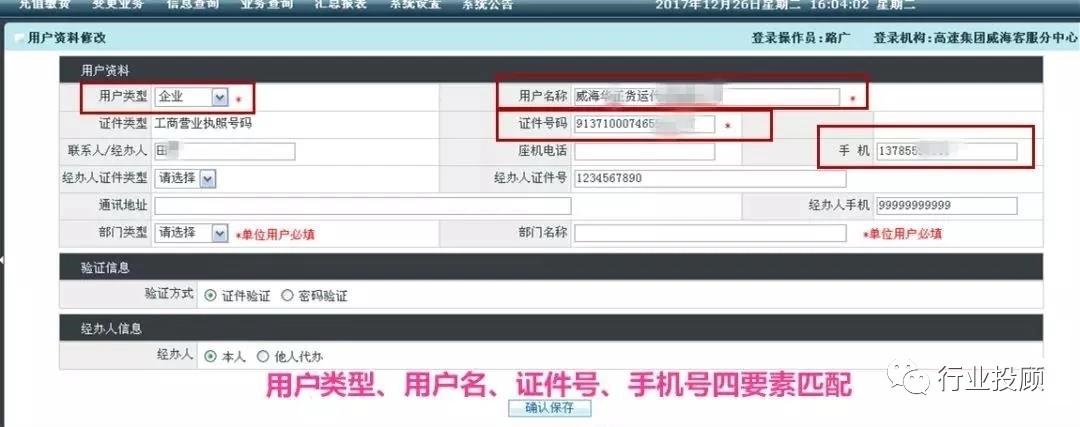 第一步:客户需要前往开卡网点确认预留信息是否正确(用户类型、用户名、证件号、手机,必须与开票系统信息匹配!)。