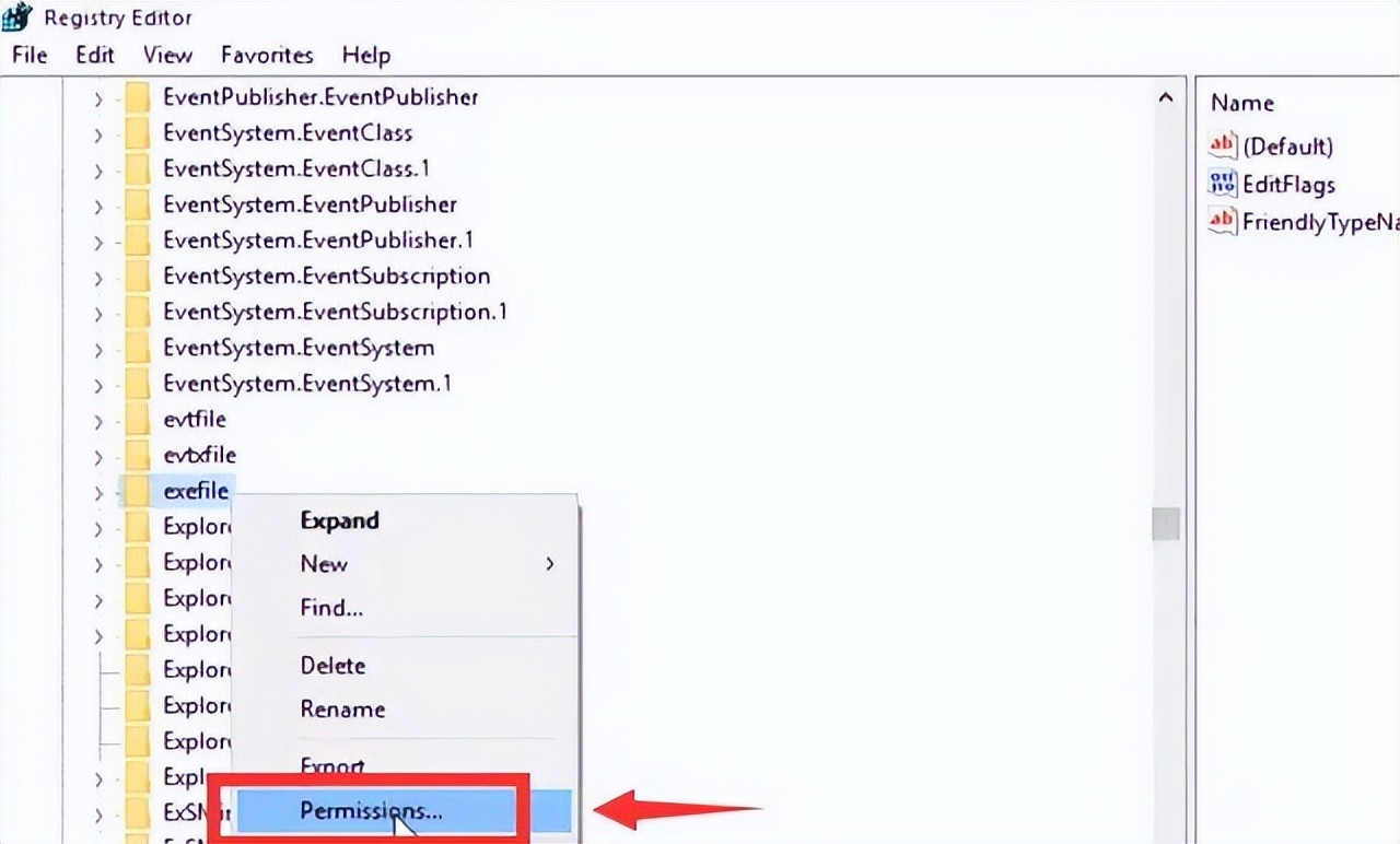 2.第二步:鼠标左键单击Excel.Chart.8选项,然后在单击鼠标右键选择“权限(Permissions)”。