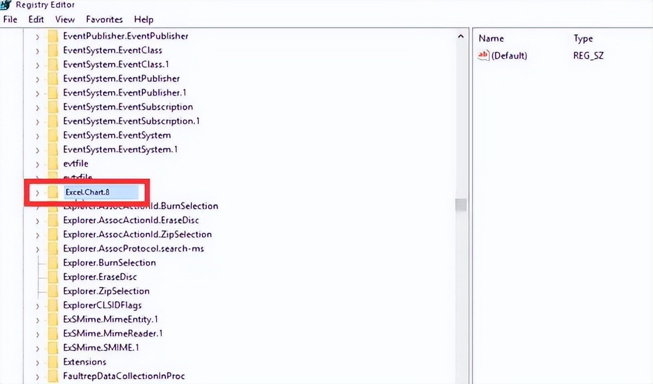 注册表选项展开路径:HKEY_CLASSES_ROOT\Excel.Chart.8\