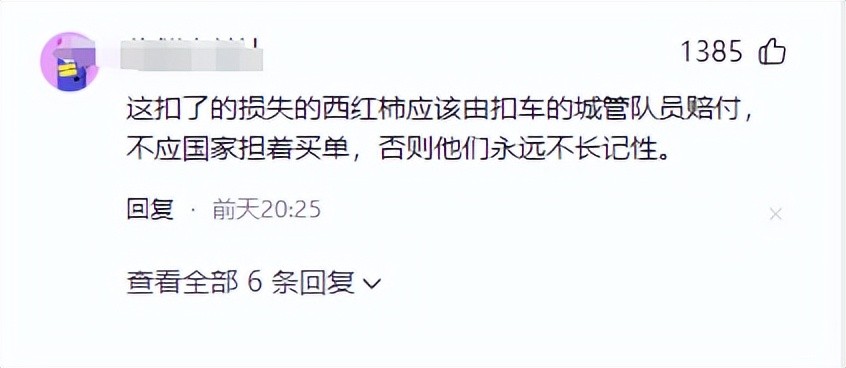 于是,责任不可避免地落在了城管部门头上。一整车的精包装西红柿,损失金额显然不菲。有网友建议,赔偿费用即使由城管部门支付,也应从个别责任人的工资中扣除