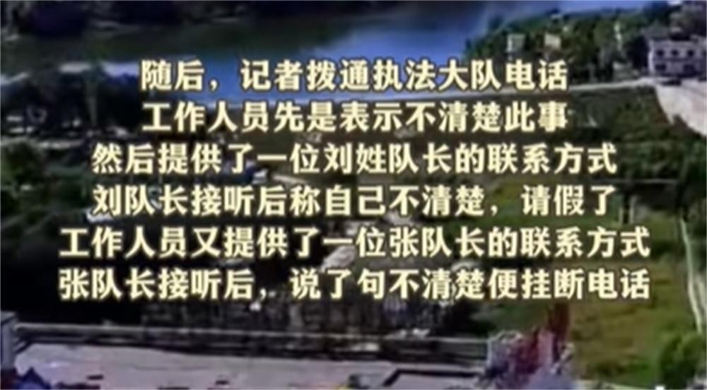 记者无奈之下,再次找到了执法大队的张队长。张队长对此事也是闭口不谈,只简单地说了句不清楚,然后就挂断了电话。
