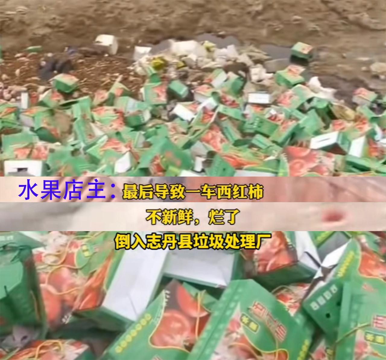 这个时刻,当时扣留货车的城管部门他们又在做些什么呢?他们将一车的腐烂西红柿全部送达了当地一家大型的垃圾处理厂,工作人员开始逐箱将这些西红柿丢出车外,一瞬间整个垃圾处理厂堆满了一箱箱精包装的西红柿。