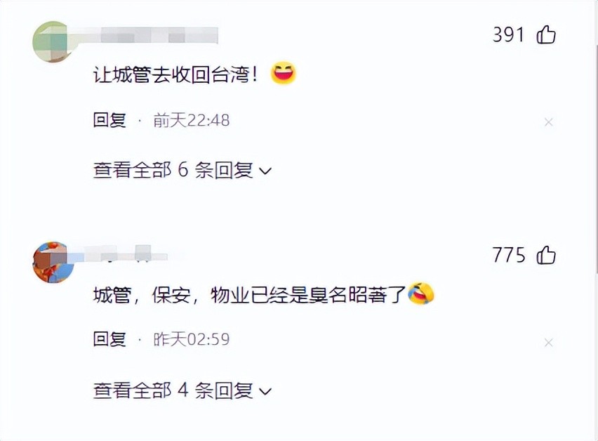 让城管去收回台湾!肯定能省时省力。网友对这民间两大组织真是评价多多啊!
