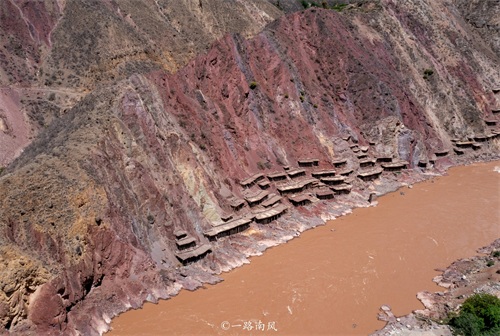 信步进入景区,望向对岸的崖壁,身边的朋友突然发出感叹-崖壁上的建筑好像吊脚楼啊。