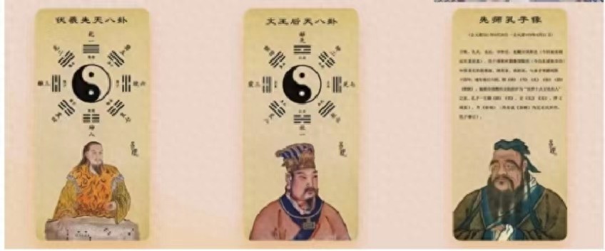 中间这个是文王,周文王,他根据八卦推演出64卦,并写卦辞和爻辞。