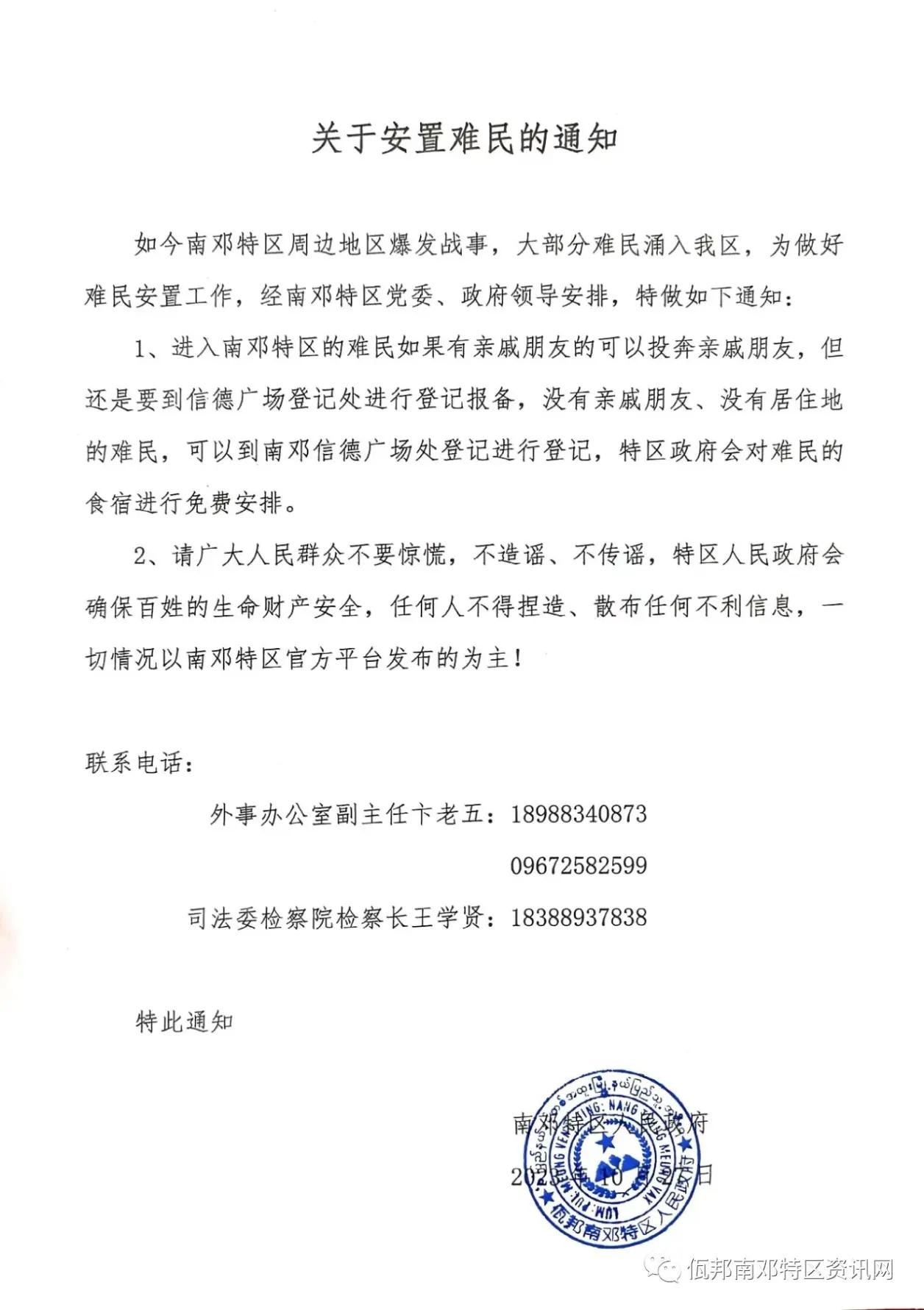 按照目前网上流出来的视频信息,果敢的清水河口岸附近已经被同盟军控制住了,这个口岸对应中国的孟定清水河口岸。除了视频以外,这个信息还有一个渠道可以证实,今天上午佤邦南邓特区公众号发了一则“关于安置难民的通知”,提到“如今南邓特区周边地区爆发战事,大部分难民涌入我区”。