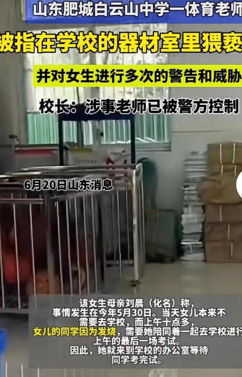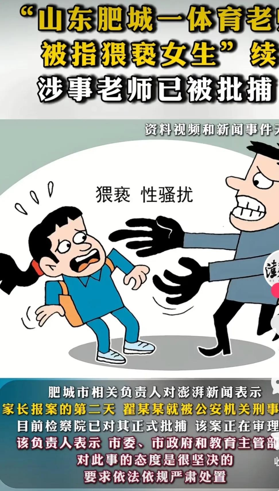 校园惊现猥亵丑闻,正义之剑高悬 ,山东省肥城市,一个曾经宁静祥和的地方,近日却被一起令人震惊的校园事件打破平静。白云山中学,这所承载着无数家庭希望的教育殿堂,竟成了罪恶发生的场所。体育老师翟某某涉嫌猥亵女生的消息不胫而走,如同一道闪电划破长空,震惊了整个社会。家长们的心中燃起了怒火,学生们的眼中充满了恐惧,而社会各界的正义之士则纷纷挺身而出,要求彻查真相,严惩不贷,以正视听,维护校园这片净土。