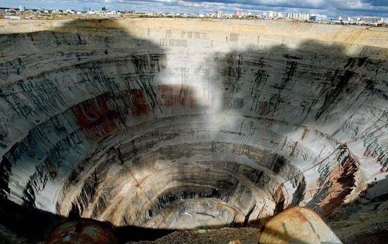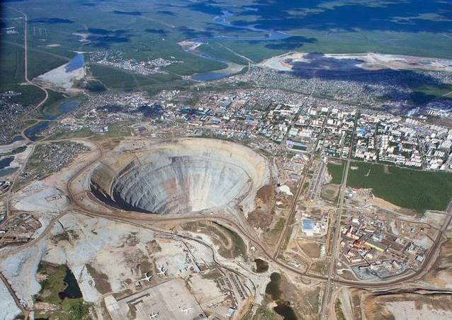 今天我们要说的这个世界上第二大的露天钻石矿场,位于俄罗斯中部东西伯利亚地区的Mirny市,这里拥有“俄罗斯钻石之都”的美称。
