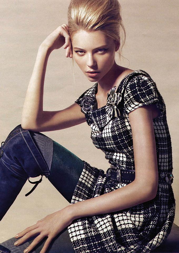 6. 安娜·塞莱茨妮娃Anna Selezneva,1990年7月29日出生,俄罗斯莫斯科177cm。根据《 Vogue》俄罗斯版中世界上最有影响力的时尚摄影师,例如Mario Testino,Steven Meisel和Peter Lindbergh说,她是俄罗斯时尚界的宠儿。2007年,《the Best Model Group》的一名经纪人邀请她尝试作为模特,但两个月后,她在巴黎找到了第一份工作。2008年- 2011年安娜拍摄了各种时尚杂志封面。