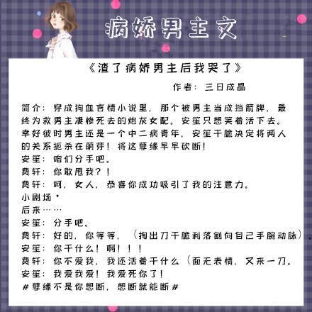 1、《渣了病娇男主后我哭了》作者:三日成晶