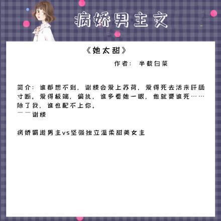 Holle!小编我来啦,今天给大家带来的是病娇男主的甜文:他男友力max心狠手辣,变态忠犬,占有欲十足。