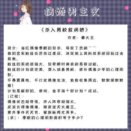 短书评:男主病娇,女主痴汉,有男扮女装的梗。穿越系统现代架空,偶像死在她的面前,穿越回去拯救偶像?男主是当红明星,女主是机器人,因为遇见男主觉醒了个人意识。番大王的脑洞我是服的,各种反套路。搞笑略带暗黑向,又有糖吃,中了好几个少有的萌点,病态美少年,女主痴汉萌,读起来欲罢不能不能停下来。女主还有一键换装系统自带的。