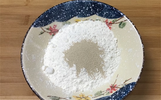 1、咱们首先准备一个大碗,放入200克面粉,然后放入2克酵母。