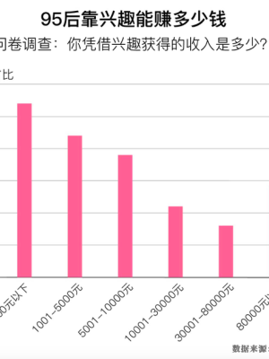 B站让不少年轻人看到了用兴趣赚钱的可能性,城市画报曾联合腾讯QQ发布《95后兴趣报告》显示,超过70%的受访者用兴趣赚到了1000元以上,其中不乏以兴趣为职业的年轻人。