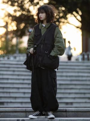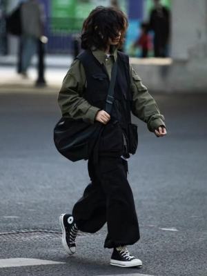军绿色衬衫+黑色工装马甲真的好舒服,一套日常少年风的look,就像是偷穿男朋友的衣服,好看又保暖,搭配上黑色单肩包,简约又不简单~