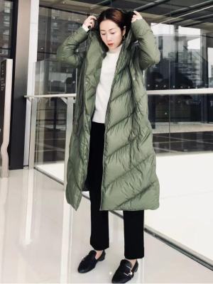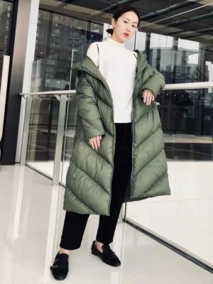 柔和的米白色毛衣显得人皮肤白皙温柔,选择军绿色的羽绒服作为外套,复古又时尚,到膝盖的长度保暖又能遮盖腿部缺陷~