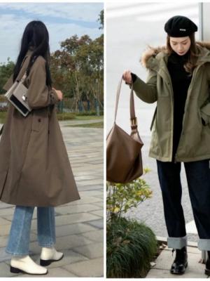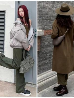 卡其色是个超级显气质的颜色,而硬朗的军绿配上柔和气质的卡其色系更是充满了复古气质,而且这种颜色还不挑肤色,任何身材的人穿起来都很不错。