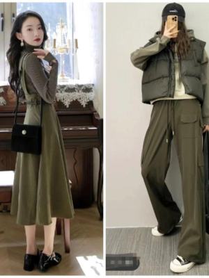 白色的衣服是百搭神器,而军绿色的稳重可以让整体看起来因为和谐而提升了好感度。
