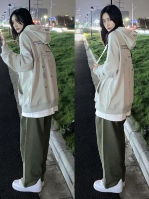 look1 浅绿色连帽卫衣+军绿色阔腿裤