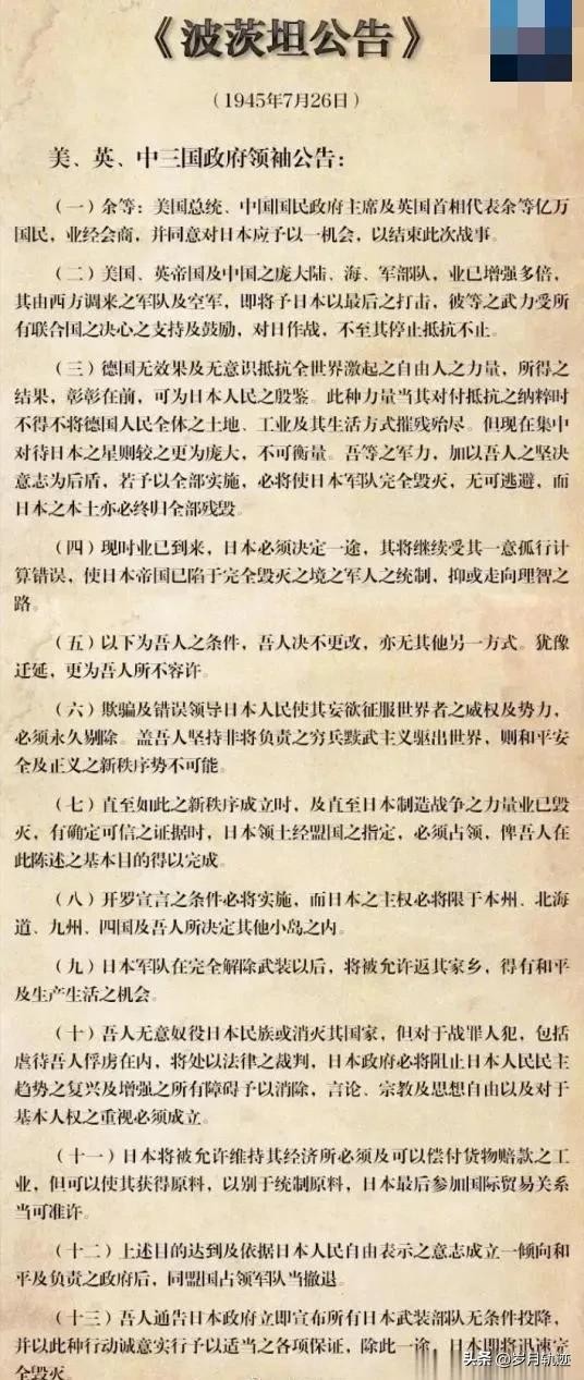 仔细对比日本《官报》和广播内容,会发现一个诡异现象:诏书通篇未提“投降”“战败”,反而强调“为万世开太平”。这份由汉学家川田瑞穗主笔的文书,藏着精妙的话术陷阱——中文译本里“无条件投降”对应的日文原文,实为“受诺”(接受《波茨坦公告》)。