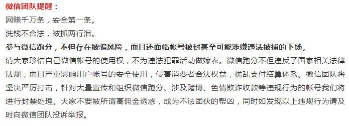 微信方面表示,这种“跑分”模式具有很大的风险,比如有可能涉及赌博、色情、欺诈收款等,不仅押金被骗走,自己还可能因此涉嫌参与违法犯罪活动被移交司法机关。