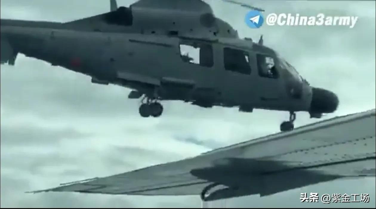 根据菲律宾公务机上搭载人员拍摄到视频,我海军直升机在靠近菲律宾公务机后,利用两机速度相近的特点,大胆向菲律宾飞机靠近!并直接从菲律宾公务机头顶飞过!