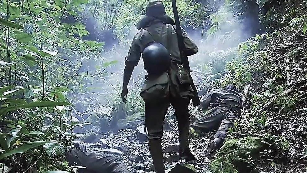 乡间小路上,行尸走肉的日军,也只有在听到飞机低空掠过的时候,才会条件反射的趴下,自己战友的尸体堆积的路边,他们也无暇在意了。