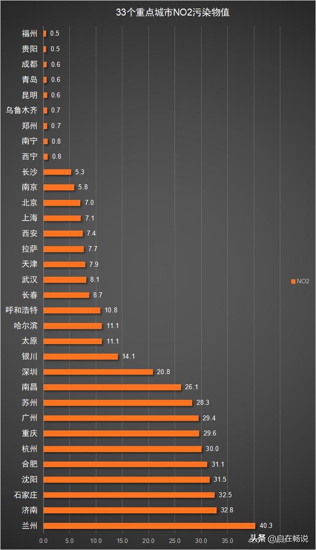 33个重点城市NO2污染物值