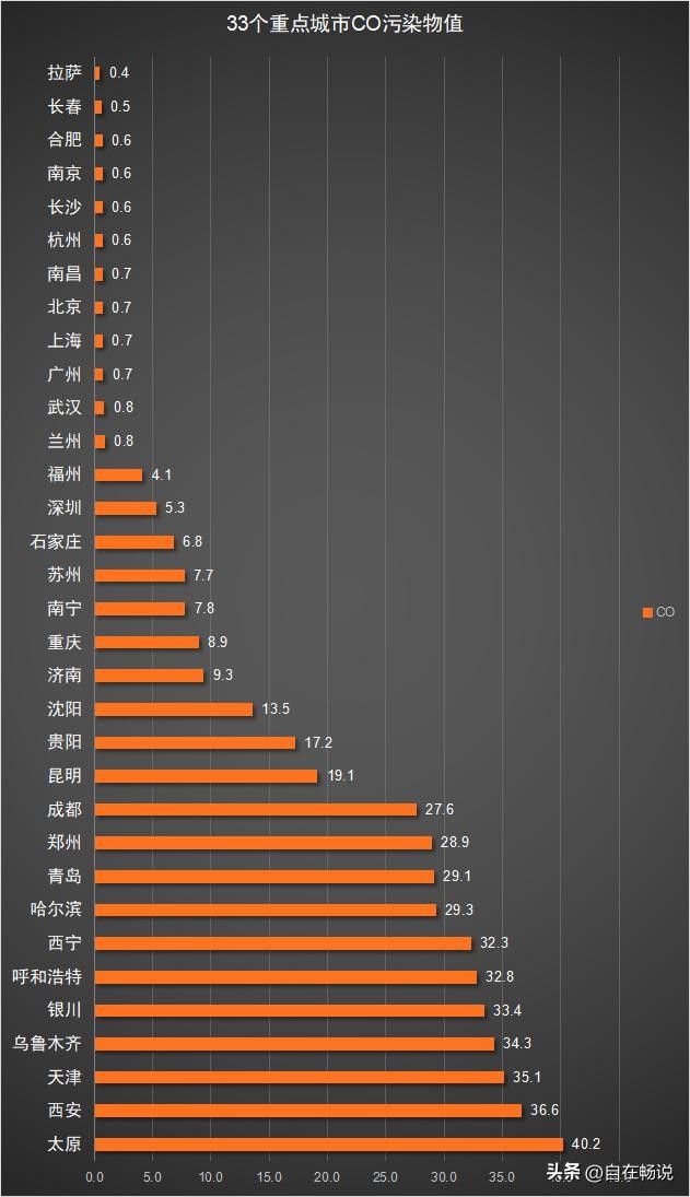 33个重点城市CO污染物值