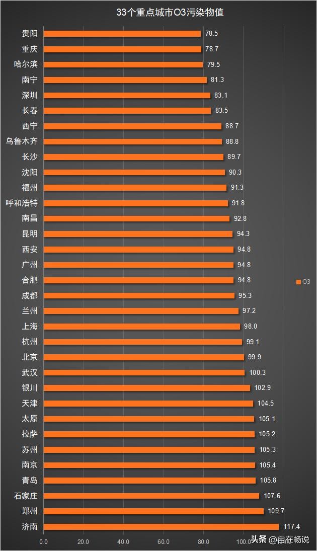 33个重点城市O3污染物值