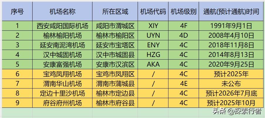 陕西民用机场大全(建议收藏)