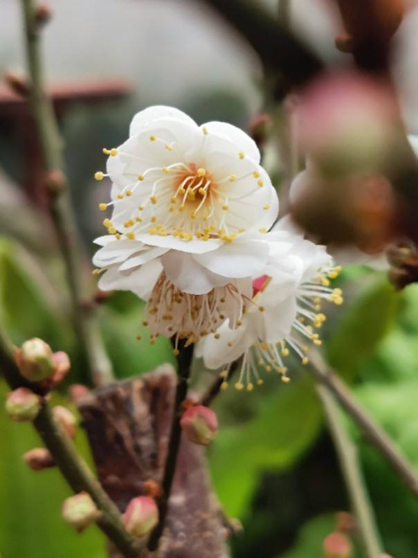 而梅花虽然也是在冬天盛开,却整整晚了三四个月,基本上看到盛开的梅花就已经是冬天的末尾了。