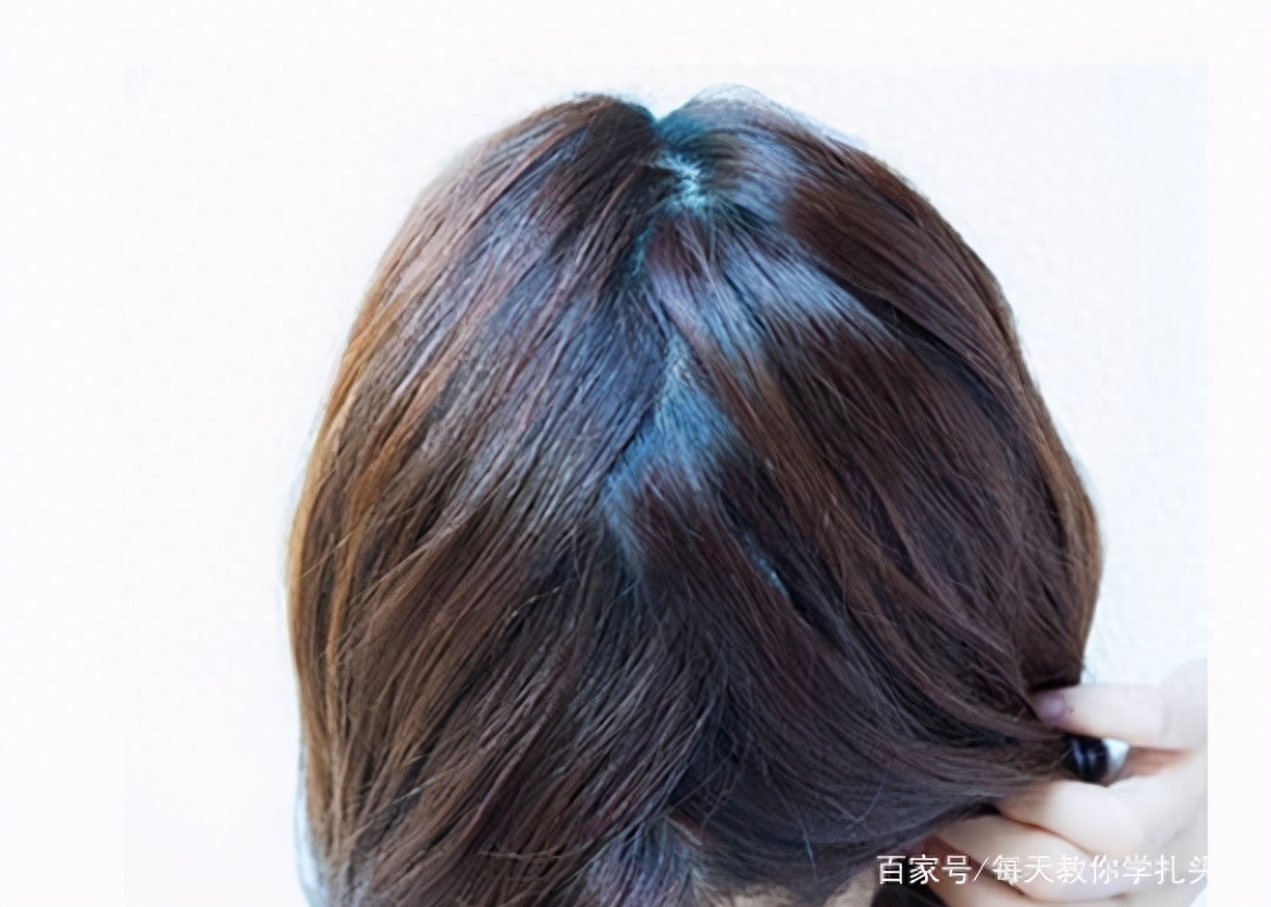 我们现在就一起来按双蜈蚣辫图解的方法来扎头发吧,我们就先把头发给梳理一下,再分成两半,两半的头发给分好了,我们就可以再把头顶上面的头发给抓起来。